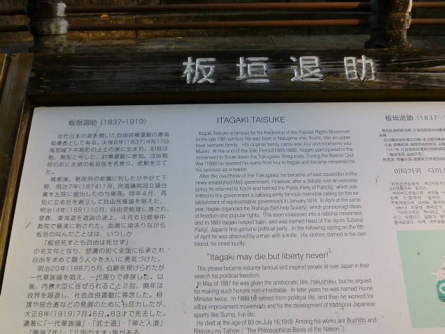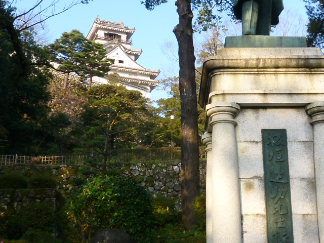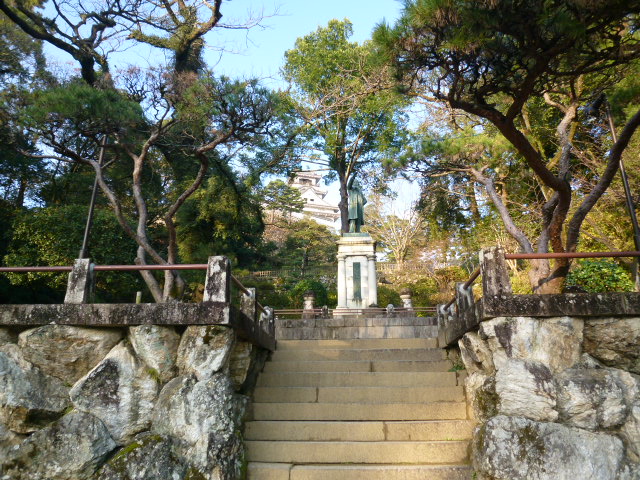 今日は南国の高知に来ています。四国の南方向にありますので、1月なのにちょっと暖かい感じがします。ここは「高知公園」で土佐藩初代藩主の山内一豊で知られている高知城の敷地を公園としたものです。1603年の築城で国の重要文化財に指定されている天守などが数多く残っています。公園内には山内一豊像や板垣退助銅像などがあります。天守までは少々上り坂となっていて階段となっています。結構体力いりますよ、朝の散歩には良いですね、そのあと朝市巡りもいいですね。