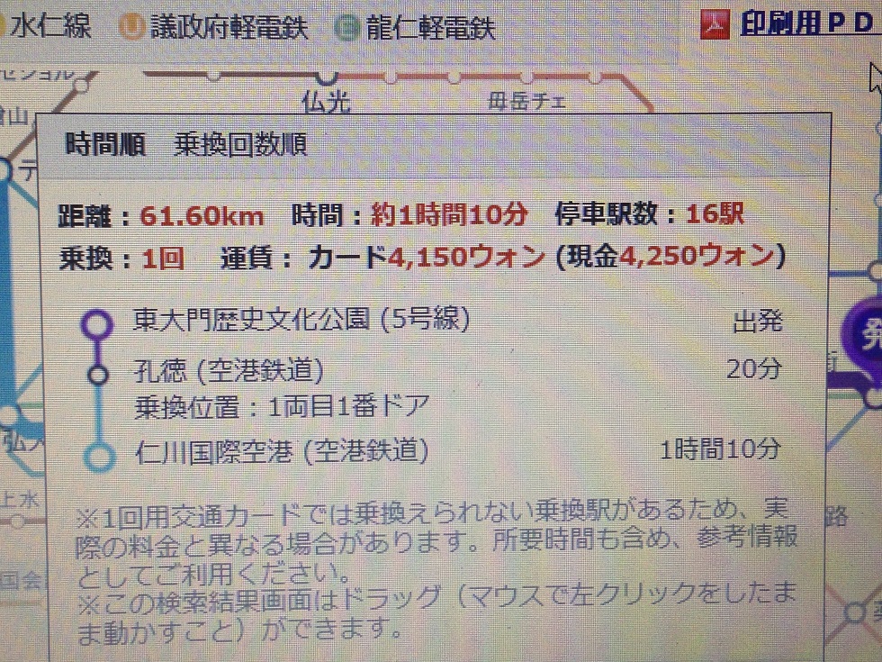 アジアのハブ空港として有名な仁川国際空港ですが広い空港です。いつも思うのですが入国審査が長くかかりすぎです。そして出国審査もかかりすぎです、センサーに最近必ずと言っていいほど引っかかります。関空では問題ないのに・・・市内へのアクセスは渋滞を避け地下鉄かソウル駅への直通列車が良いですね。リムジンバスは乗り心地は良いのですが、市内での停車駅が多く渋滞に当たる場合もありますね。