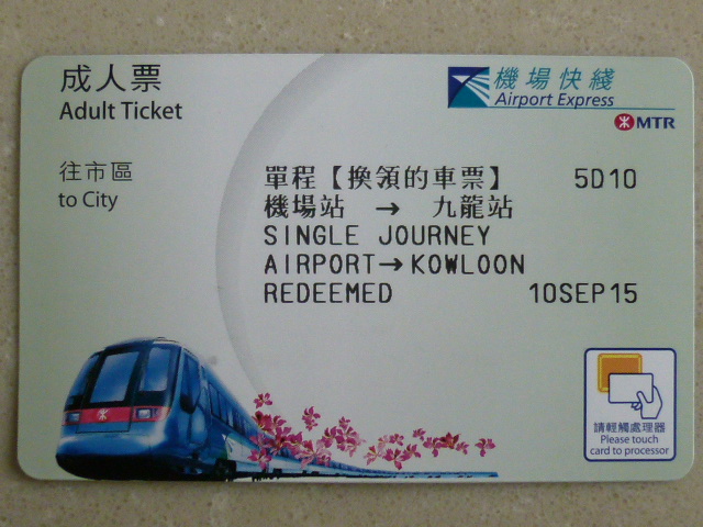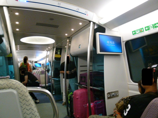 香港空港から九龍や香港島までの移動は速さで言うと、この「エアポートエクスプレス」が一番いいですね。ちょっと揺れがありますは気になりません。バスや地下鉄と比較するとちょっと高いのが難点ですね。しかし、2名の利用だと割引もあるようです。窓口で尋ねてください。それと、香港空港での改札口はありません、出口でチケットを渡すようになります。また、逆の空港へ行く場合は入口の駅でチケットを渡し空港出口では素通りです。楽ちんです。
