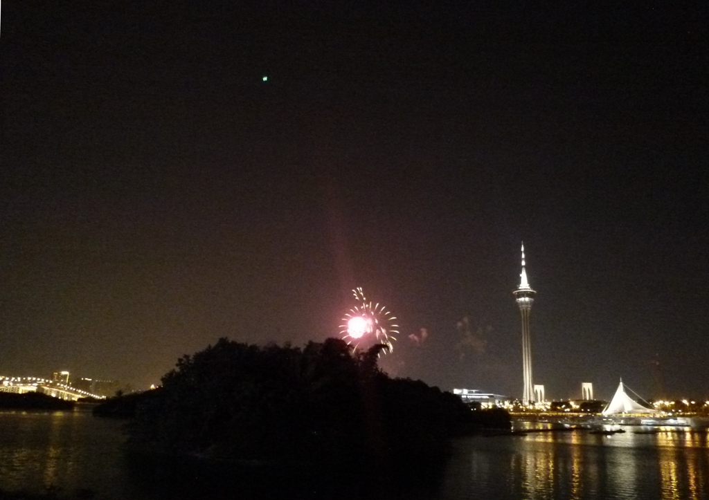 今回もカジノ目的でマカオにきています。そこでたまたま花火が開催されていました。南灣湖に反射し写っているマカオタワーやそれらの風景がとても綺麗ですね。タワーの方からも綺麗と聞いていたのですが人が多いようなのでここにしました、正解です。次回はタワーに登って逆に夜景を見たいと思います。