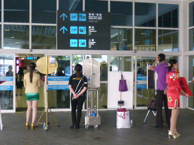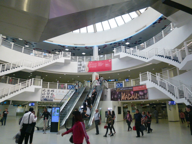 マカオに来る時には良く利用する場所です。近年利用者もさらに増え、施設が充実してきているようにも思えます。1階の到着口にはいつものように「きれいどころ」のベッピンさん達が我々をまっています。手荷物検査や税関も簡単なのでフェリーでの入国も良いですよ。しかし休日などは混雑しますので早めに来た方がいいですね。