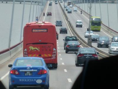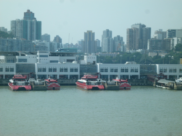 マカオ入りの方法は中国本土から、空路そして、フェリーがありますが、このフェリーは香港便が圧倒的に多いようです。この路線の途中風景は今までと違った風景が見られます。それは大橋の建設です。来るたびに香港・珠海・マカオを結ぶ大きな橋が徐々に進んでいるのがわかります。橋が完成すると、このフェリーでの運行は減少するのでしょうね。