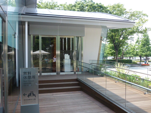東京駅から真直ぐ歩き皇居へ行く途中に和田倉噴水公園がありますが、その公園内にあります。レストランがありますが、腹も減っていないし特に用もないので無料休憩所に入りました。綺麗で和風な感じです。ちょっとした展示コーナーもありますのでのんびりできますよ。皇居を散策し帰りにまた来ます。利用下さいね。