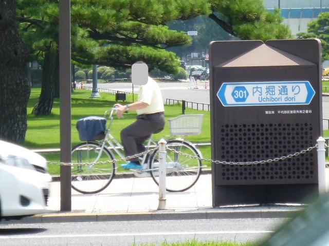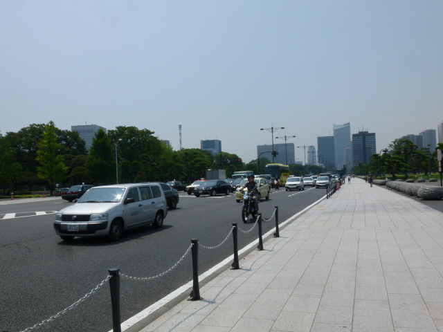 今日は皇居付近を散策しています。東京駅からずーっと歩いて来て内堀通りまできました。幅の広い道路ですね。びゅんびゅん飛ばしている車もいます。まぁー歩道と自転車は別にありますから安心ですが横断時は気を付けましょうね。内堀通りがあるなら外堀通りもあるかなって思いお巡りさんに聞いてみたところ、東京駅の向こうにあるようです。江戸城広かったんですね。