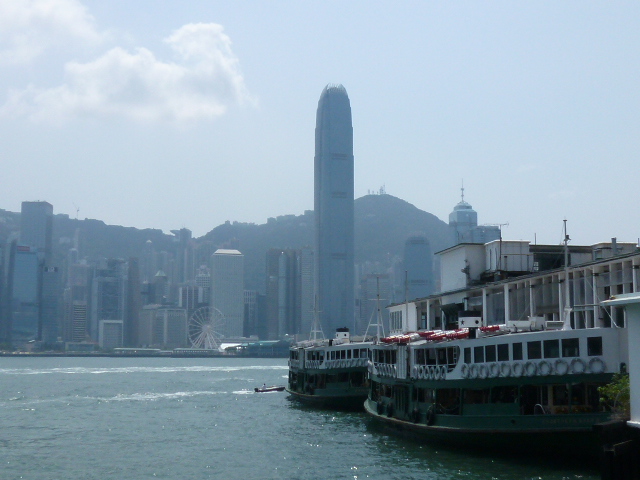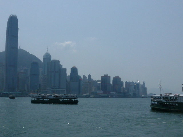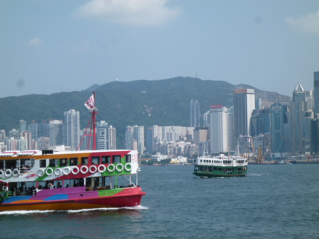 久しぶりの香港です。経由地には良く使っていますが、今回はちょっと時間があるので、荷物を空港に預け散歩します。ビクトリア湾から望むビル群は、香港で最も有名な観光地ですね。ちょっと雲が入るとビルの先端や「ヴィクトリア ピーク (扯旗山)」は見えませんが。今日は晴天なので良く見えています。ここビクトリア湾を見ていると、貨物船や観光船など色んな船が行ったり来たり、自由な旅をしているーって感じがします。さぁースターフェリーで横断します。また違った姿が見れるに違いありません。