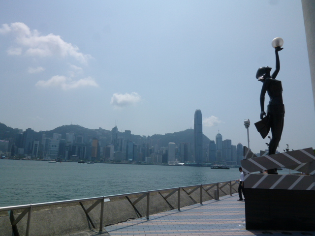 久しぶりの香港です。経由地には良く使っていますが、今回はちょっと時間があるので、荷物を空港に預け散歩します。香港で最も有名な観光地は、ビクトリア湾ビル群の景色ですね。その九龍半島の南端に遊歩道があります。尖東站付近からビクトリア湾沿いの時計台、フェリー乗場付近までのコースです。途中モニュメントもありビクトリア湾の向こうに見えるビル群も最高に輝いています。さぁーずーっと歩いてみましょう。ができました。