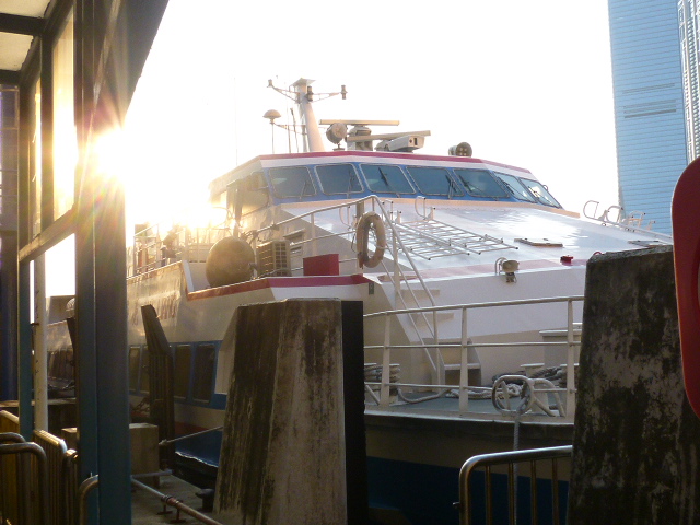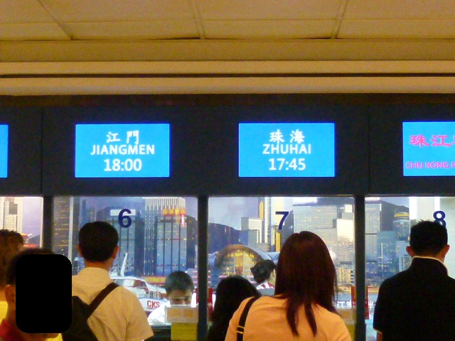 さぁー香港で時間をとりぶらっとして、中国の珠海に入ります。香港からマカオや珠海に入る方法はフェリーがあります。いくつかのフェリー会社が運行していて、乗り場は香港島側にある「港澳碼頭」からと九龍半島側からの「中国客運碼頭」がありますが、今回は初めての「中国客運碼頭」を利用します。利用者は圧倒的に「港澳碼頭」が多く便数も多いようですが、観光した場所が、九龍半島側だったので「港澳碼頭」まで行くことはないし、ここからの移動です。タクシーで来ましたが、下車するとエスカレーターで登ります。ちょっとわかりにくいですが、表示があるので迷わないようにしてください。それと地下鉄が無いのが不便です。