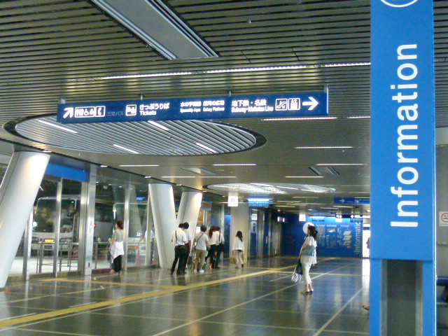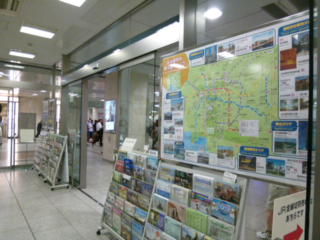 今日は名古屋城を散策しよう、と思いまずは名古屋駅の観光案内所へいきます。場所は駅構内の中央の桜通口に近い方にありました。ここで名古屋城への行き方を尋ねると、観光ルートバス「メーグル」を教えてもらいました。時刻表などをいただき、さぁー出発です、親切にありまとうございました。