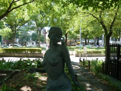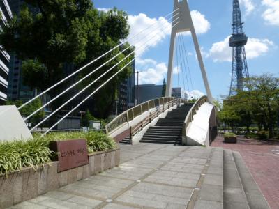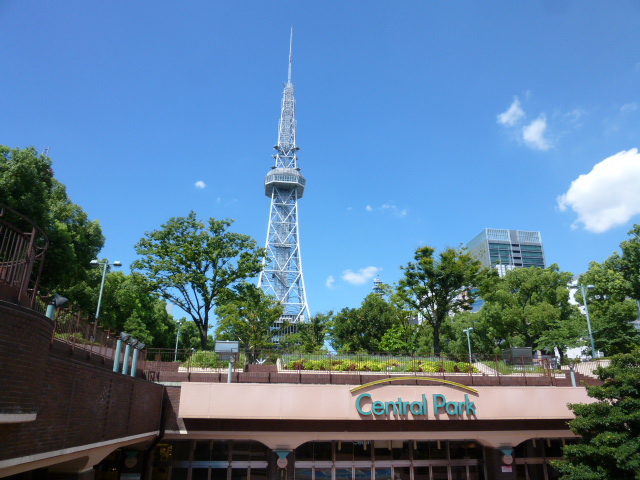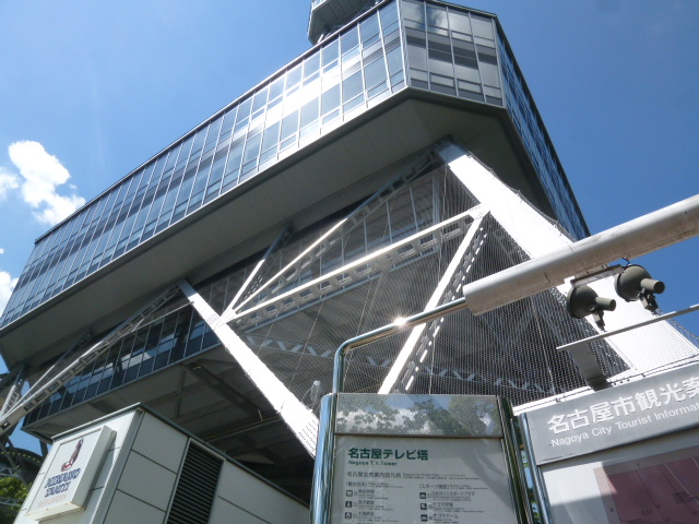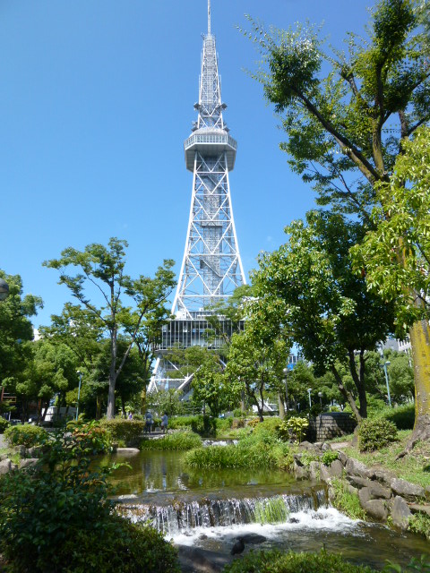 名古屋城を見学し、ここ長~い久屋大通公園を散策してテレビ塔まで歩いてきました。テレビ塔は緑あふれる公園の中心付近に建っています。1954年の建設で、高さ180m、地上90mに展望台があり市内を一望できます。登録有形文化財に指定されています。塔は堂々と建ち、付近には小川も流れ楽しめ、爽快な気分になりました。