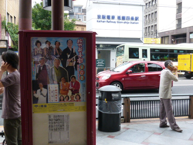 皆さんがご存知の「京都南座」です。日本最古の劇場として有名ですね。四条通りと川端通りが交差する場所にあります。川端通りの地下には今や京阪電鉄が走っていますから、祇園四条駅を下車し、出口?の階段を登ると直ぐ横に出ます。南座では歌舞伎公園が中心ですが、7月には「夏休み特別舞台体験」なども開催されるようです。是非どうぞ訪問ください。