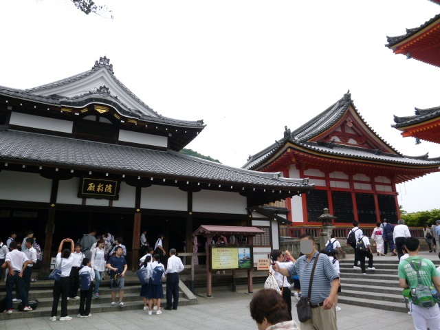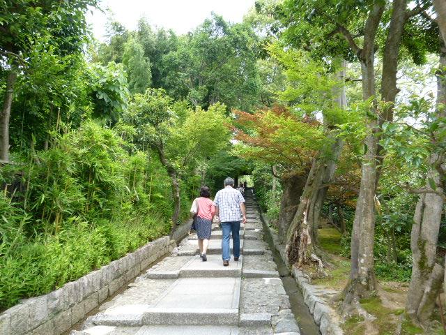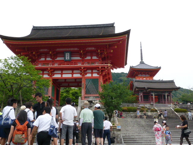 清水寺へは、東山五条から五条坂から茶わん坂を登って行く方法と清水道交差点から松原通を登って行く方法などがあります。いづれもなだらかな坂道が続きます。途中まではそうきつくありませんが、三年坂から流れてくる観光客の群衆と合流すると疲れがどっと出てきます。