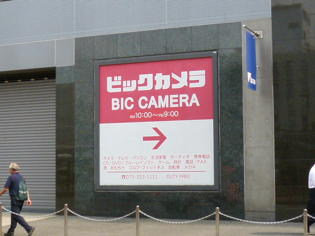 ここはビックカメラ京都駅店です。京都駅と直結しています。店に用もないのに通過して駅に入っている人もいますね。便利ですから。しかし、駅構内からビックカメラに入る場合は注意気ださいね。ひとつのホームからしか行けません。表示もあまり見当たりませんし、駅員さんに聞いた方がいいですよ。今回は中央口から行きましたが、ビックカメラへの途中、中央郵便局の前のポスト上には京都らしい可愛いオブジェがあります。さぁー本題のビックカメラへ行って、私が免税対象で購入できるか聞いてきます。ダメでした。色々と条件があるようです。さらに安価で購入したかったです。