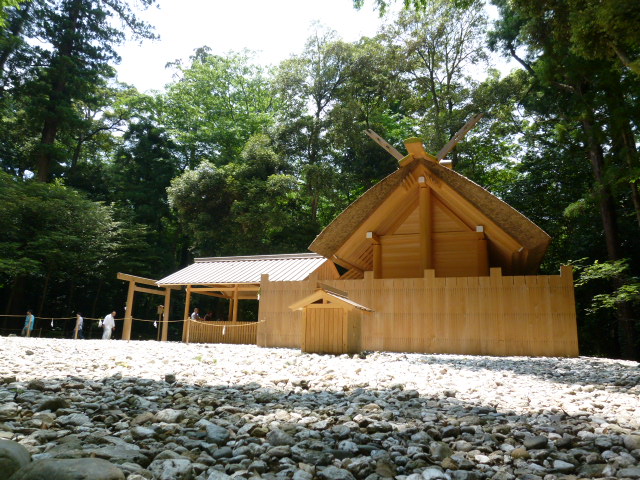 今日は伊勢神宮の散策です。外宮から内宮そしてその正宮を参拝し、別宮をまわっています。外宮に比べて標識がわかりにくいようにおもいます。しっかりと案内図をもって行きましょう。荒祭宮への参道には、収納庫みたいな御稲御倉や外幣殿があり森林のなかを楽しめます。さぁー、次は休憩場所の参集殿を目指します。