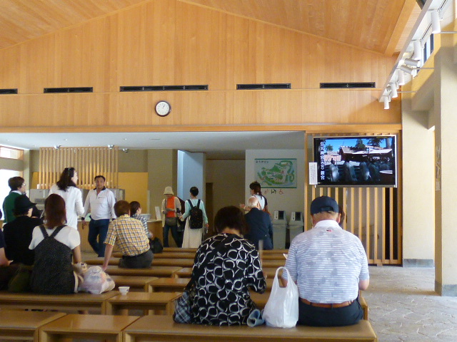 今日は伊勢神宮の散策です。外宮から内宮そしてその正宮を参拝し、もう終盤です。大きな休憩所があります。参拝者が多いこともあって広くとってますね。館内にはTVモニターでの紹介や展示物、お土産も販売しています。ここで水分補給に休憩しましょう。癒すことができますよ。