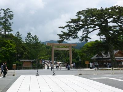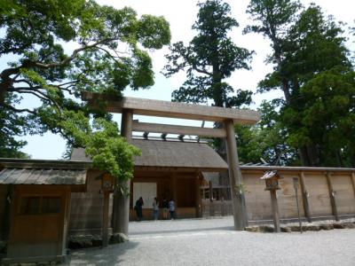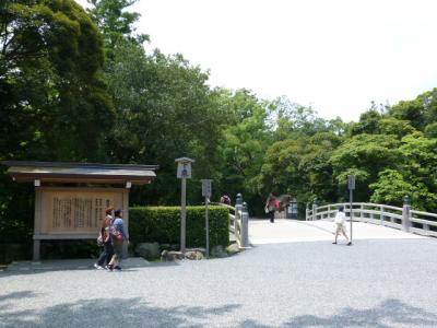 今日は伊勢神宮の散策です。まずは外宮で、伊勢市駅から参道を通ってきました。観光案内所でもらった地図を見てまわります。風宮や土宮など別宮もたくさんあるようです、まずは入口左手の「せんぐう館」へ入って予備知識を習得するのもいいでしょう。きれいな池もあるようです。さぁ、伊勢神宮・外宮です、参拝し御利益をいただきましょう。