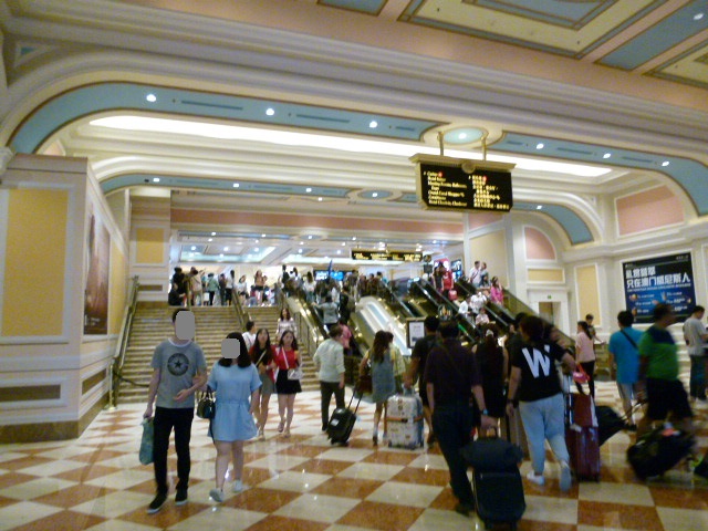 今日はマカオのカジノ散策です。なるべく多くのカジノを回ろうと思っています。この「カジノ ヴェネチアン」へは、「サンズ」から無料シャトルバスできました。このバスがある事を初めて知りましたね。良かった、良かった。デカイ建物です、それだけあって大人気、特に中国人が多いのではないのでしょうか、団体の観光バスで本土から直接車で入れますからね。しかし、カジノ自身はすいています、この方たちは見学目的でカジノはしていないようです。でかく広いですから、周るのに時間かかりますよ。覚悟してくださいね。さぁー入りましょう。