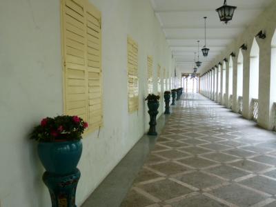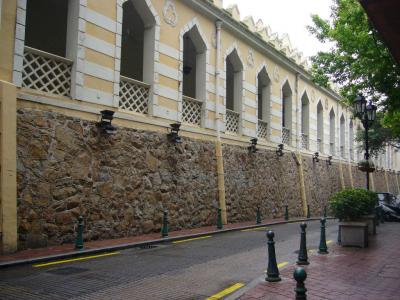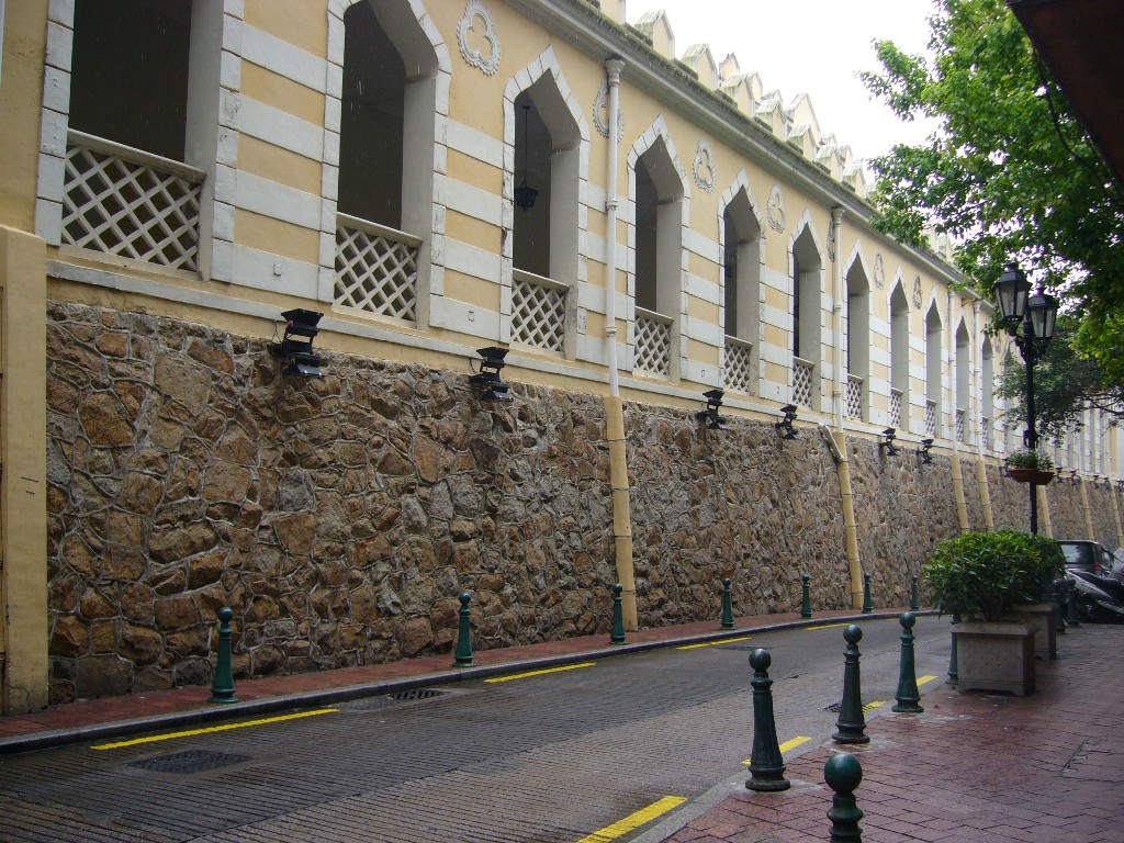 今回のマカオはカジノと世界遺産の観光です。今日はセナド広場から南方向のバラ広場まで散策します。ずいぶん歩きました。「港務局大樓」は媽閣街を通って左手にあります。路はアップダウンやカーブが歩道は狭いので注意してくださいね。1874年建築で現在も港務局のビルとして現役のようです。クリーム色と白色、お洒落な建物ですね。開放感のある2階のテラスに入口があります。左側の坂を登るか右側の階段を登って行きますが、入る事は出来ませんでした、残念。休憩するのも良いですよ。さぁー次へ行きましょう。