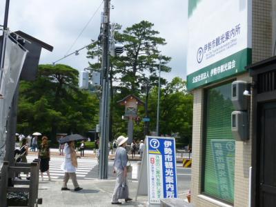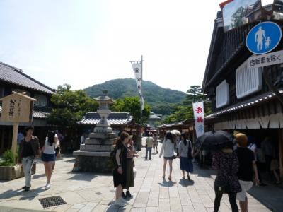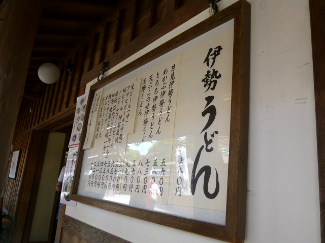 今日は伊勢に来ています。目的はもちろん伊勢神宮参拝ですが、ここ「おはらい町」や「おかげ横丁」も見逃せない観光スポットです。伊勢神宮を回ってちょっとお腹もすいたので有名な伊勢うどんを食べます。しかし、どの店が良いか、わかりません。「おかげ横丁」に入ると直ぐ左手に目立つ店「ふくすけ」があり、一番人気らしいのでここで伊勢うどんをいただきです。料金は480円、見てびっくり、ダシが黒い。えぇー味が濃く醤油辛いのでは?と思ったのですがそうでもなく、良い味していましたね。また麺はちょっと太く腰はあまりまく柔らかさを感じました。普通のうどんと比べ違った感覚で美味しくいただきました。繁盛していました。