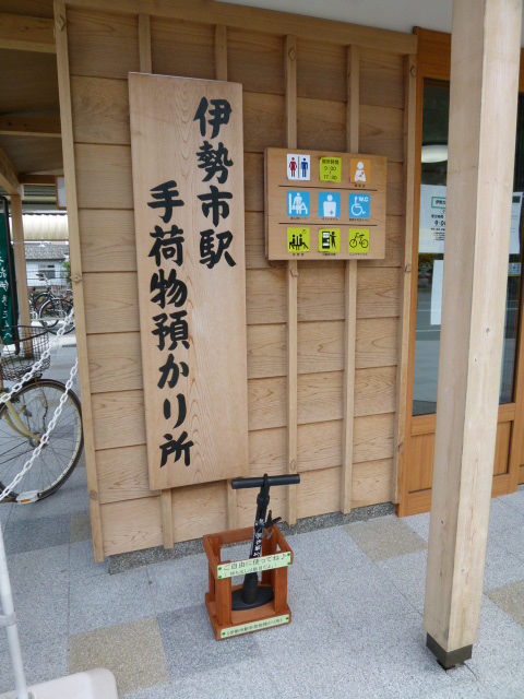 JP伊勢市駅にきました。観光地なので観光案内所やコインロッカーはもちろんあります。しかし、ここには観光客に親切な「手荷物預かり所」があります。下車し左側です。休憩室やトイレもあり、レンタサイクルや空気入れまで、利用下さいね。
