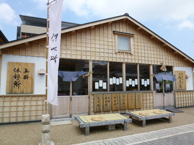 今日は伊勢市の観光です。伊勢市駅から外宮参道を通って外宮へいきます。「若松屋 (外宮前店)」は、その参道の外宮前右手にあります。私は薩摩揚げ大好き人間で、この店に眼が止まり入って見ました。色んなものが並んでいます。お店の方に、お勧めは?、と聞いたら「ひりょうず」を教えてもらいました。早速1個いただき、中には、もずくや竹の子、わかめなど、うずらの卵も入っています。たくさん過ぎて何が入っていたのか憶えていません。インターネットで調べてくださいね。飲物を持っていなかったのですが、紙コップにやさしくいただきました。ありがとう。なかなか美味しいですよ。