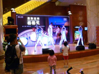 今日はマカオのカジノをなるべく多く回ろうと思って「スターワールド カジノ」に来ています。場所はウインの隣、東側の位置です。きれいで爽やかな感じがしますね。このスター、星のイメージがいいですね。正面玄関は屋根付きの、車両の乗り降りスペースが広いのが印象的です。また館内に入るとちょうど子供が好きなショーもやっていました。楽しく過ごせそうです。是非どうぞ。。。