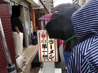 口コミの評価が良かったのでここ「第一旭」の特性ラーメンを食べに行ってきました。評判通りの行列で小雨にもかかわらず約20分外で待ちました。しかしやさしいですね、店の厨房の窓からおじさんが傘を渡してくれ、それを使用しそう濡れずに待つことができましたね。注文はおすすめの「特製ラーメン」をいただきました。さらっとした醤油味でしょうか、私にとってはちょっと麺の量が多く感じました。美味しかったですが、私は豚骨が良いですね。