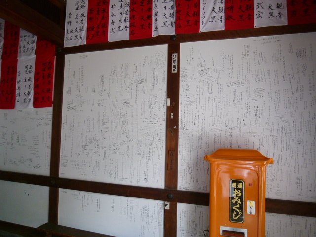 今日は八幡市の男山を散策しています。ケーブルカーで頂上の石清水八幡宮などを散策、参道を通って下ってきました。良い散策コースですよ。この近くに、らくがき寺(単伝庵)ってのがあるので行って見ました。目的地へ到着中へ入ってみると普通のお寺。。。なぜ、落書き寺、と言うのですた。とおじさんに聞くと、堂の中に落書きがある。と教えてもらいました。中に入って見ると本当に落書きだらけ、外国人のサインやマンガなども目に止まりましたね。今日は良い散策ができました。皆さんも立寄ってくださいね。