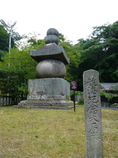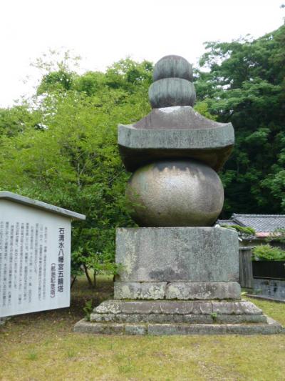 今日は石清水八幡宮(男山)付近を散策しています。参道を下山してきましたが、さぁー今から「航海記念塔」へ行きます。道は、一之鳥居の左手(放生川の逆)を通って、右に「神應寺」への道がありますが、そこを左にいきます。ここまで来ると塔の頭が見えますのでわかるでしょう。塔はでかい石で格好よくできています。力強さを感じますね。鎌倉時代の建立で重要文化財に指定されてのようです。