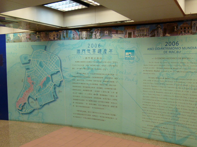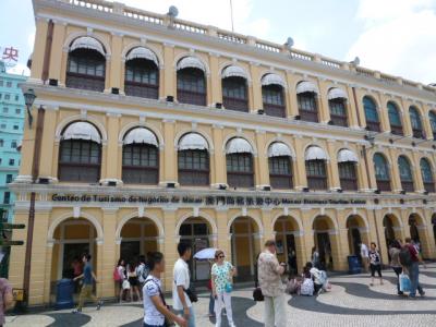 今日はマカオの数多くある世界遺産散策です。スタートは、まずその中心地とも言えるセナド広場でしょうね。そして「インフォメーションカウンター」は広場の西側にあります。日本同様にマップなどをゲット、日本語じゃなくても漢字表記で十分わかりますね。また、館内では世界遺産を紹介したパネルも展示されています。ご活用くださいね。