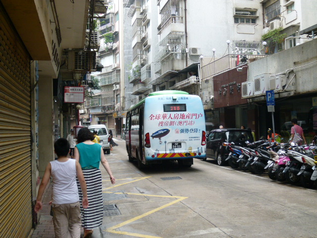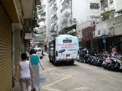 今日はマカオの数多くある世界遺産の観光地めぐりです。セナド広場付近の民政総署からずーと歩き、バラ広場まで行く予定です。ロバート・ホー・トン図書館や聖オーガスチン広場(崗頂前地)を観光し、ここ「リラウ広場(亞婆井前地)」に到着です。この広場は世界遺産に登録されています。ヨーロッパ建築の住宅に囲まれた小さな広場っと言う感じで、なんだか上品になり、ゆっくり落ち着いて休憩もできますね。さぁー媽閣街を通って、鄭家屋敷など立寄りバラ広場を目指しひたすら歩きます。バス停もありますね。