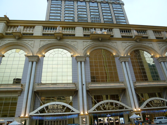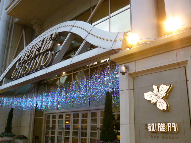 今日はマカオのカジノ散策です。なるべく多くのカジノを回ろうと思っています。ここ「ラルク カジノ」の場所は、マカオ半島のウィンの東側と言ったところです。2009年オープンですから新しいですね。パリの凱旋門をイメージした巨大な建物です。怖いお兄さん達が立っていますので、ちょっと入りにくい感じはしますね。しかし簡単に入れますよ。やましいことはありませんから。館内は超豪華2階にはライブステージがあり、うきうきし皇族になった気分で楽しめますよ。どうぞ。。。