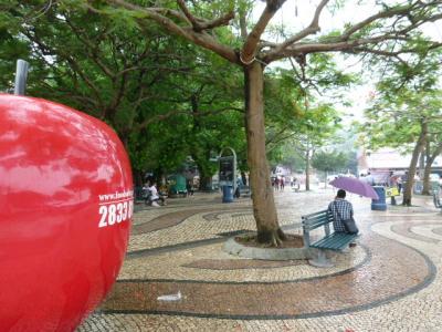 今日はマカオの数々の世界遺産の観光です。セナド広場付近の民政総署からずーと歩き、媽閣街を通ってやっとここ「バラ広場」に到着です。ここも世界遺産です、石畳や売店など公園全体にヨーロッパの雰囲気を感じます。すぐそこには、中国寺院の「媽閣廟」があります。ヨーロッパ風と中国風、特に違和感は感じませんね。さぁー、ベンチにちょっと休憩し、「媽閣廟」など周囲を散策します。