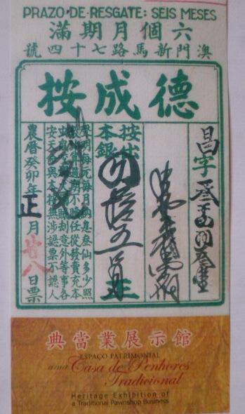 今日はマカオの世界遺産の主な観光地めぐりをしています。しかし、ここ新馬路を内港方向に右側の歩道を歩いていると直ぐ右手に「典富業展示館」との看板があり、どうもここがここでいう「質屋博物館」のようです。入館料は5HKD?間違っていたらごめんなさい。いやぁー昔なつかしい館内です。ちょっと見慣れないそろばんや記帳された資料、物品や金銭のやり取りの記録が書かれているのでしょうね。奥へ行くと「ろうや」をイメージするような保管棚、今で言うと金庫でしょうか。館内は狭いのでそう時間はかかりません。楽しめましたよ、立寄ってくださいね。