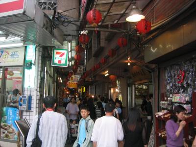 九份のお土産屋さん街の道(写真参考)は、狭いのに自動車やバイクが入り込んできます。
