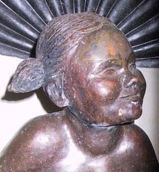 そこの奥に、檻に入った少女の像があります。