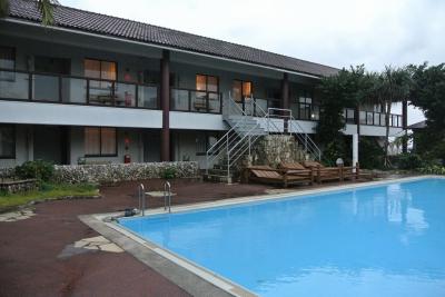 空港から車で15分ほどで到着するリゾートホテル。施設は古びているがロケーションは良いと思います。併設のレストランは地元の人もやってくるくらいで値段も手頃で、民謡のショーもありました。併設の土産物屋もあり便利です。空港へ送迎の晩がありました。
