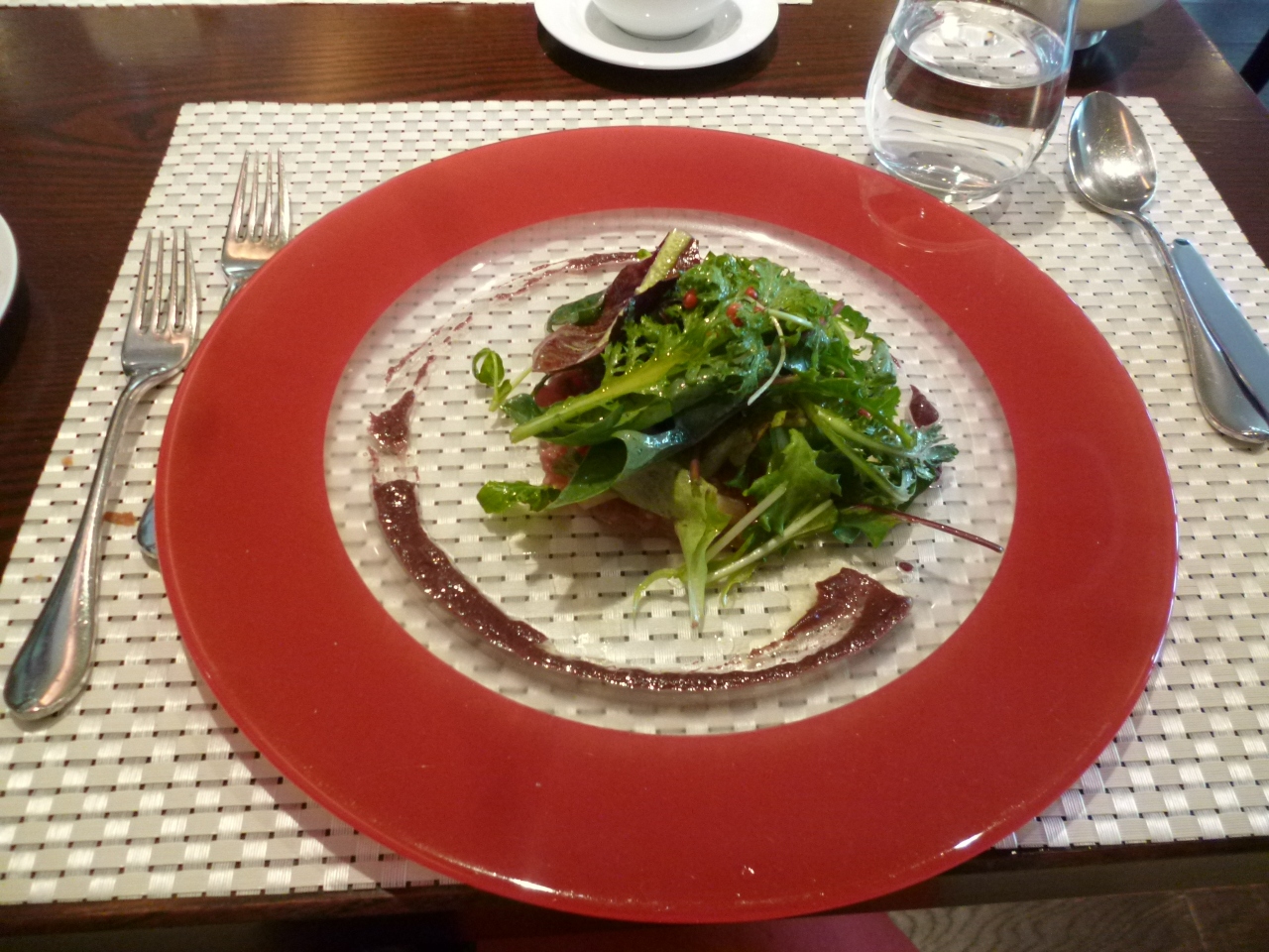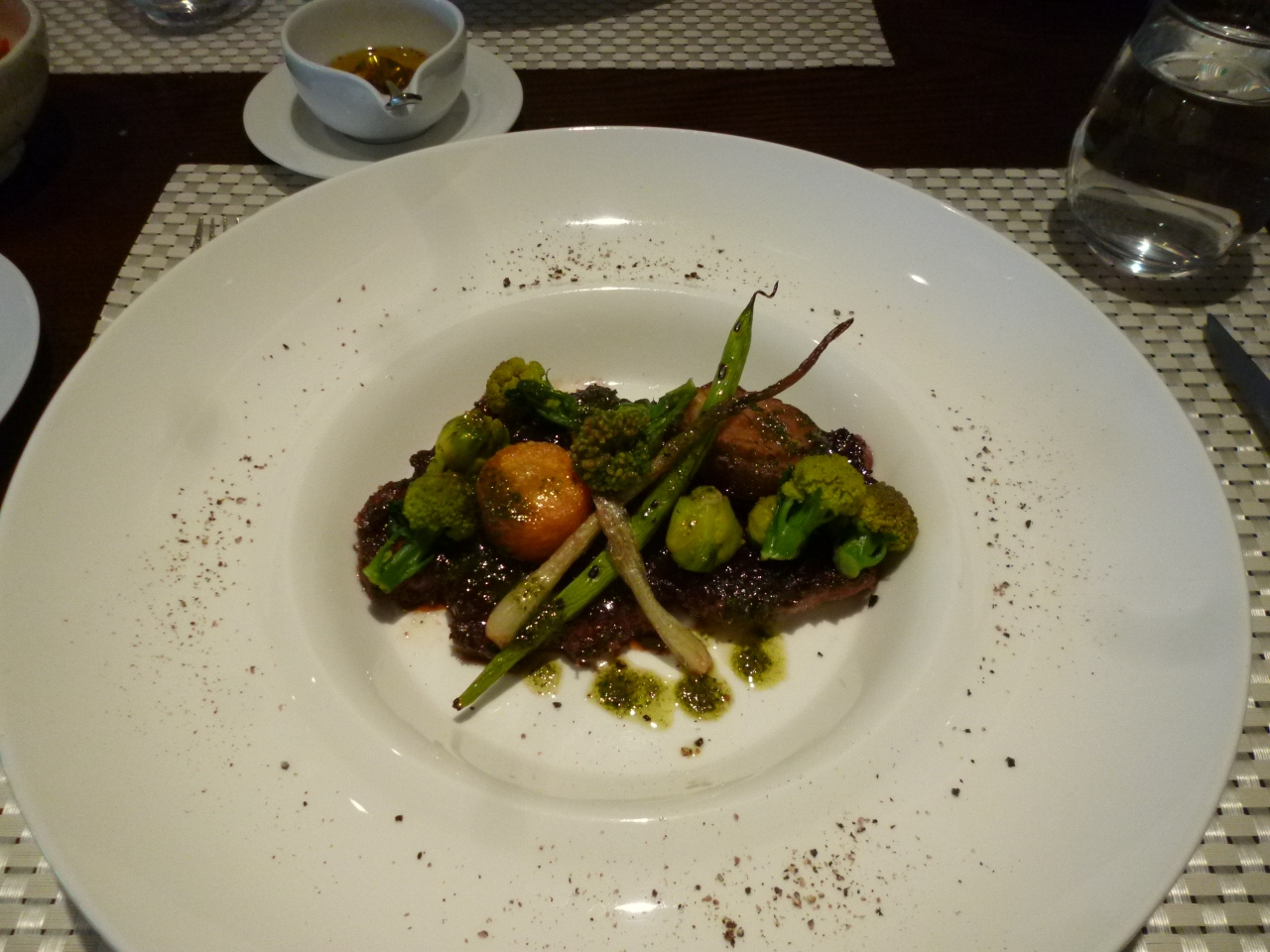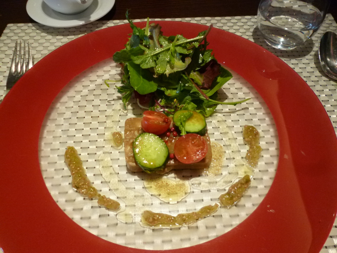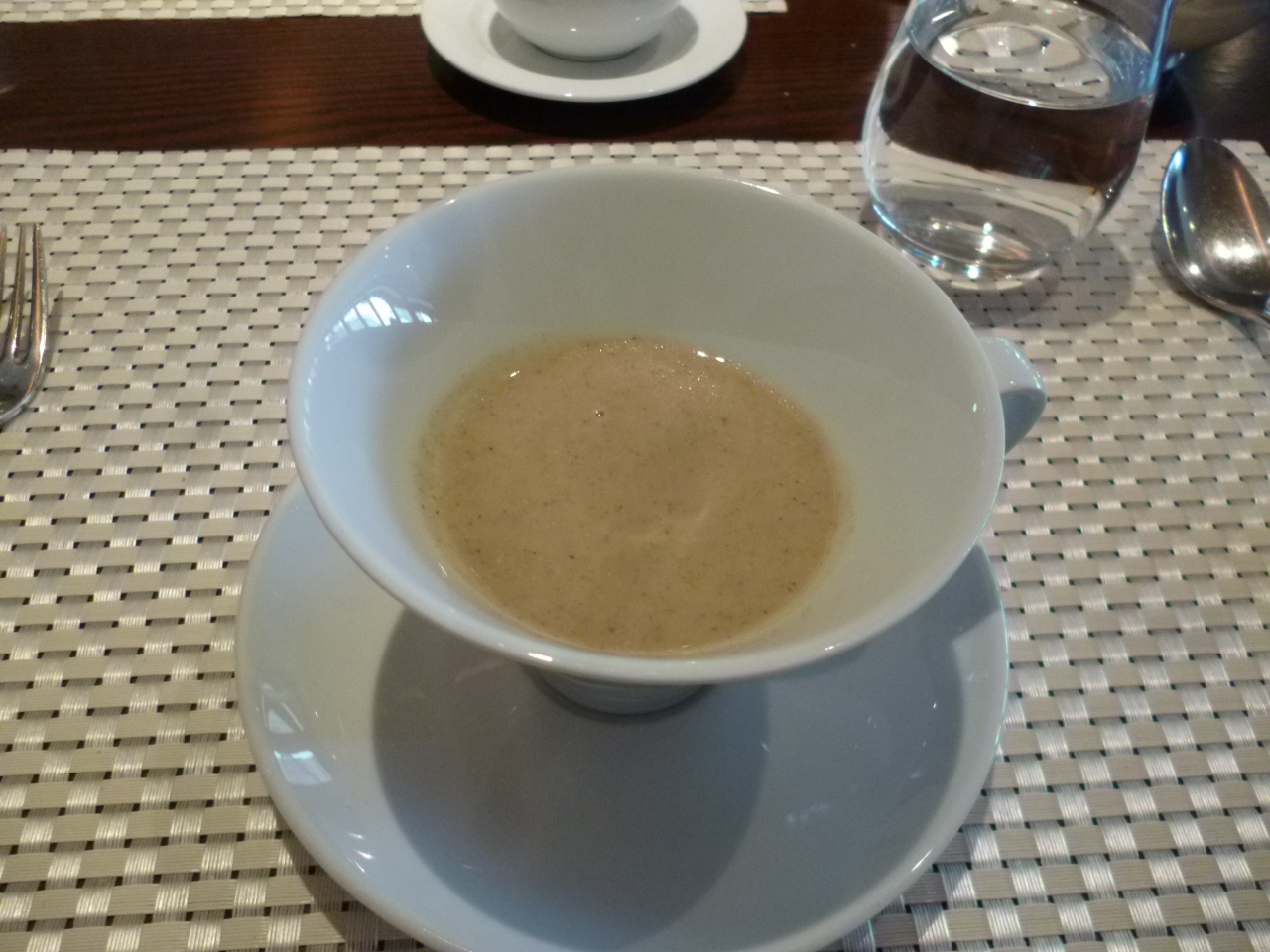 コース料理になっています.ゴボウのポタージュ,前菜,メイン,デザートでした.