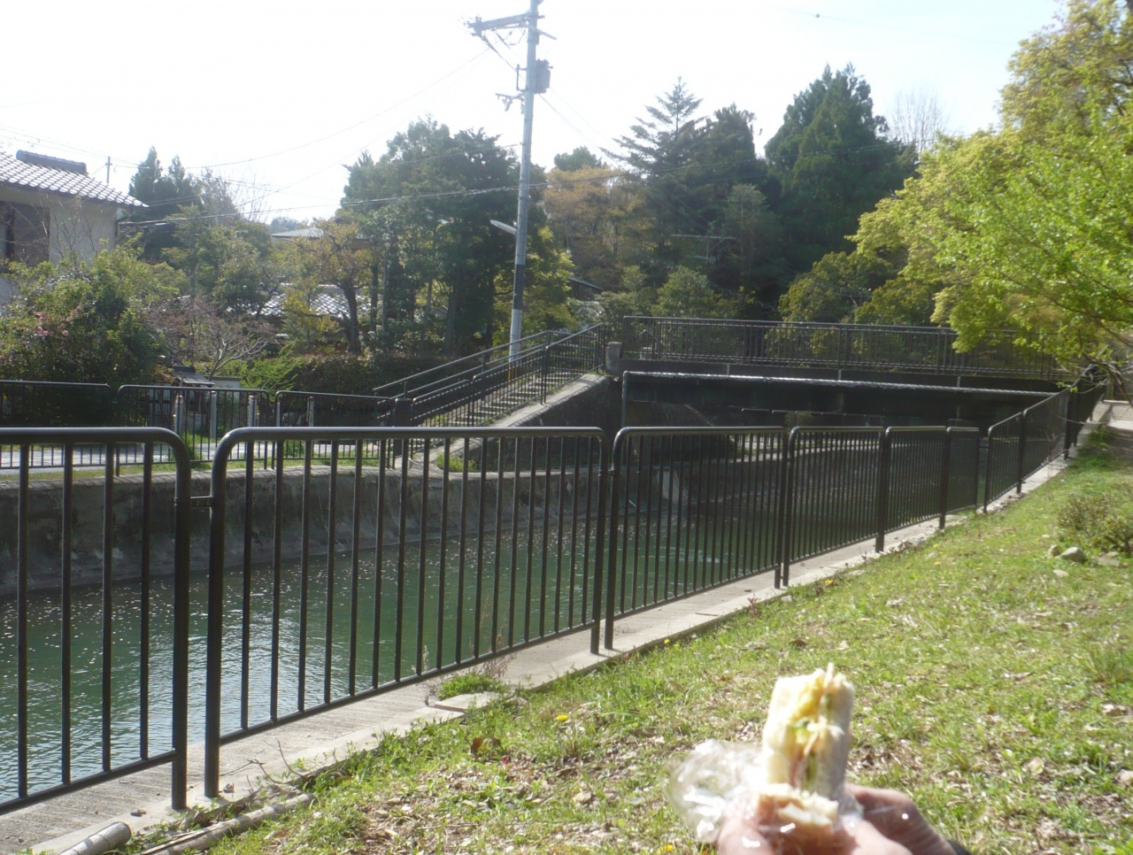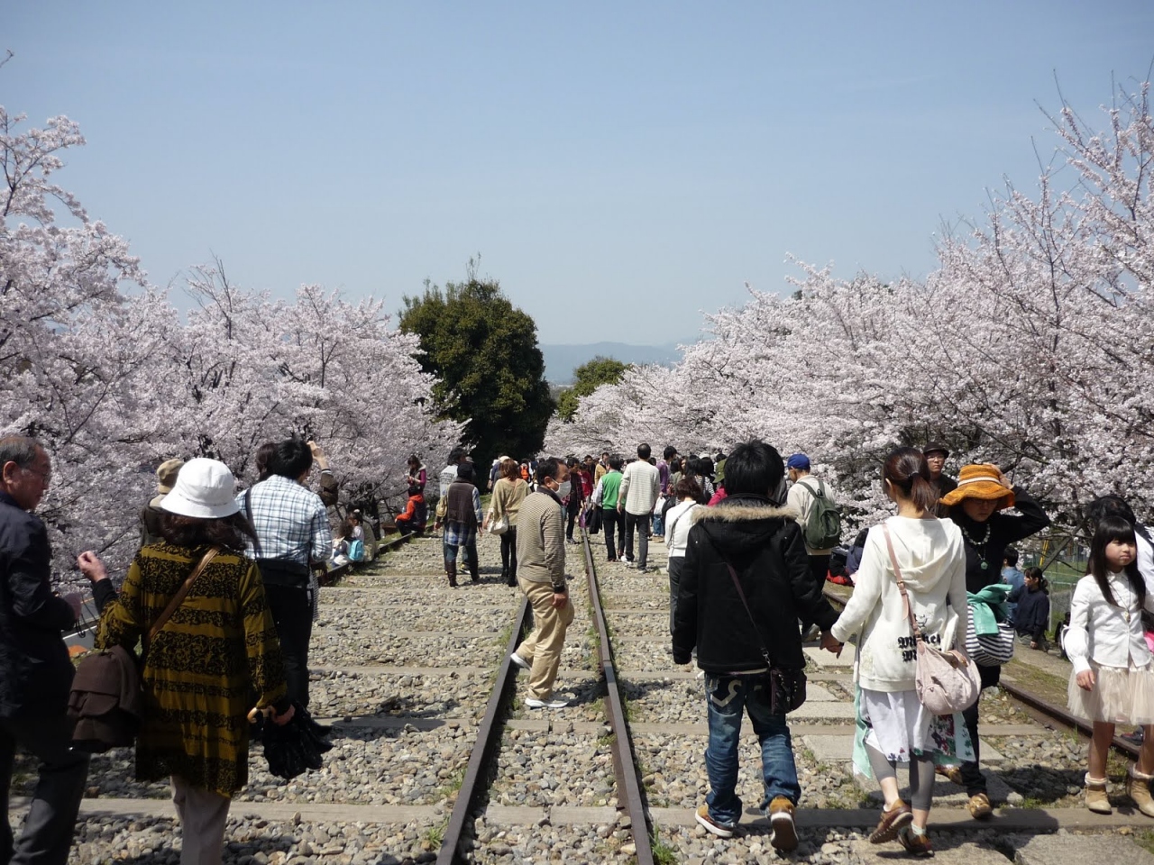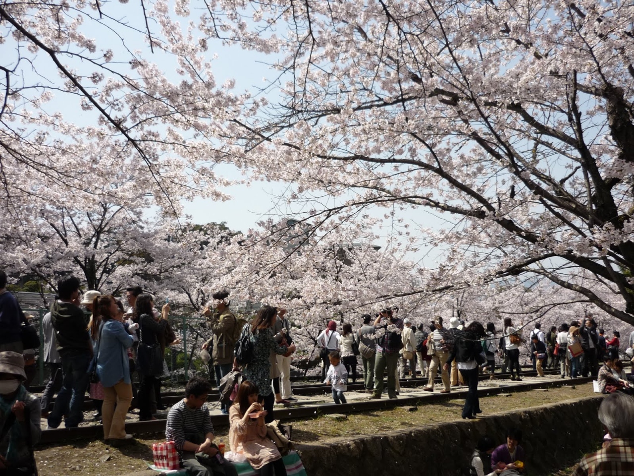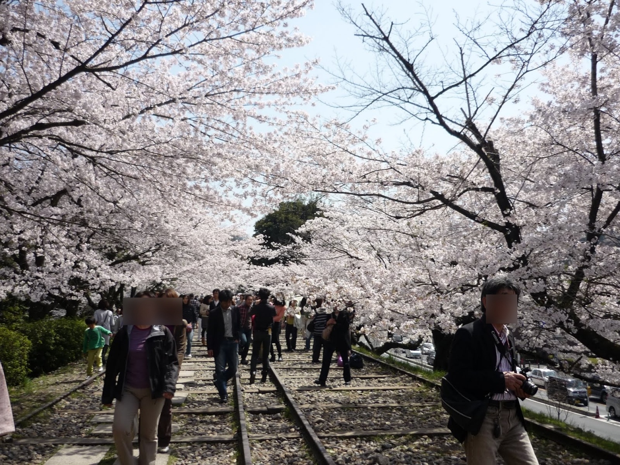 インクラインは、昔船が上がれない急な坂を貨車を使って引っ張り上げるための線路の跡です.現在は使われていませんが,線路は残っています.その両脇に桜が植えられています.そこを歩くとまさに桜のトンネル.それを見ながら昼食(弁当)を食べました.とても気持ち良かったです.インクラインは地下鉄『蹴上げ駅』からすぐです.