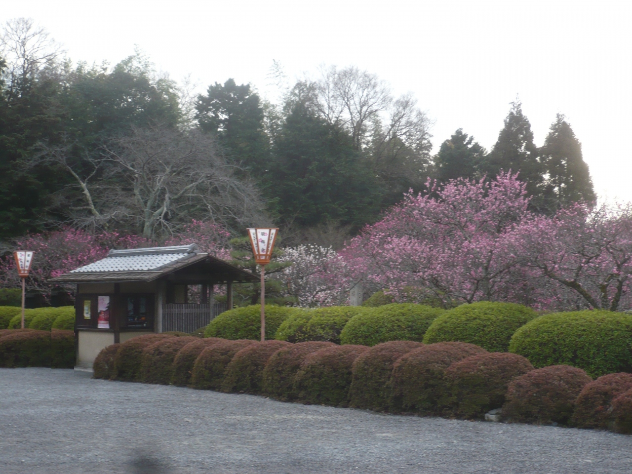 天気が悪かったせいか時間が遅かったためか人がほとんどおらず,入り口はひっそりとしていました(少しわかりづらかったです).随心院の中には無料で入れるので,小野梅園を外側から見ました.まだ満開にはなっていませんでしたがきれいでした.囲いの外側から見てもとてもきれいだったので,次回は中に入って間近で見たいです.随心院の梅は遅咲きのようです.- 旅行時期