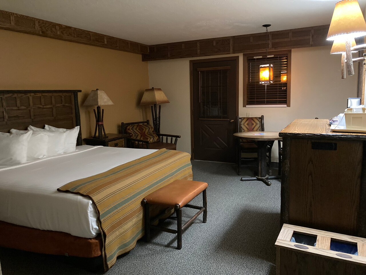 ブライスキャニオン内にあるロッジです。一泊一部屋280ドルほど。午後8時過ぎにチェックインし、ロッジ内のレストランでディナー。4人で156ドル(チップ込)。料理の味は普通です!グランドサークル旅行中はビールが旨ければオッケーです。部屋は趣があり、これぞロッジという感じ!ただエアコンが全然効かず、夜も暑くて寝付きにくかったです…。まあロッジなんでこんなもんですかね…^^;