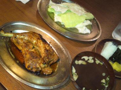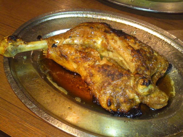 メニューはメインの鶏が「おやどり」と「ひなどり」で私は柔らかい「ひなどり」を注文しました。ステンレスのお皿に大きな鳥のもも肉が乗せられシンプルでしたが、皮はパリパリで肉は柔らかくとてもジューシーでした。かなりボリュームがあり、満足しました。- 旅行時期