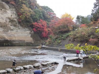 11月3連休、予報では晴れの予報でしたが、前日からの雨が昼間で続き、おかげで人出は思ったより少なく、養老渓谷は 歩くと40~50分ですが、この日は前日からの雨で足元が悪かったですが、紅葉はちょうど良かったです。ウォーキングシューズで行くといいですね。近くには 道の駅や大多喜城など史跡も多く、見所も海のもの、山のもの、美味しいものもたくさんあって 都内近郊からもアクアラインもあるのでお勧めです。