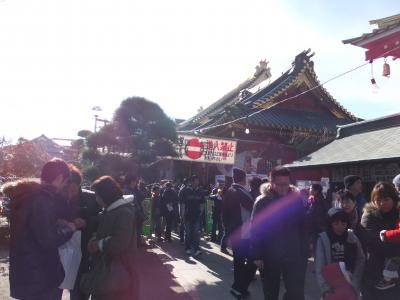 ツアーの特典で甘酒が振舞われ、出発前に入り口の建て物で花やお菓子のおみ...