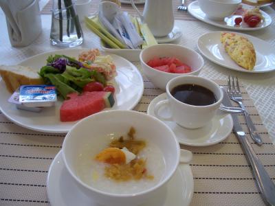朝食会場はあまり広くなく種類も少なめですが、フォーや卵料理はその場で作ってくれます。