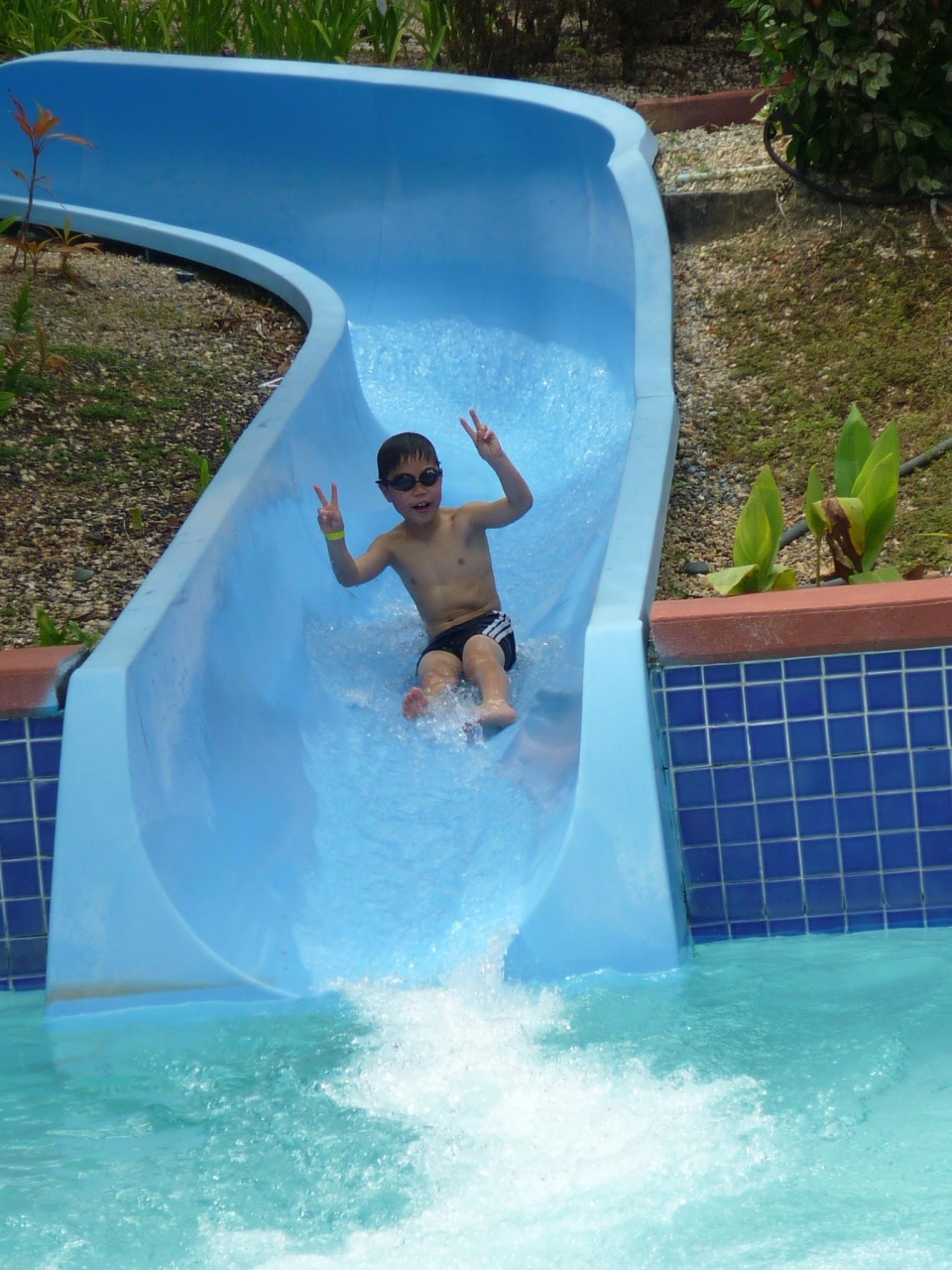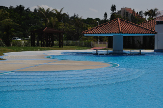 プールもきれいに手入れされている。滑り台は身長130cm以上必要。ビーチの砂は白くここもきれいにしている。沖合の灯台の方もきれいだった。遊泳エリアが狭い気がした。
