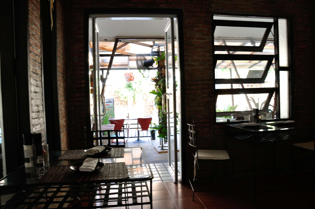 旧市街サンデ-マーケットが開かれる通りのガートクランウイアンの中にあるイタリアンレストラン(タマリンドホテル前)。店内はこじんまりとまとまっており綺麗で清潔。オープンスペースの中庭も利用でき、ピザコーナーもあります。人気のイカ墨スパゲッティ(パンが付き)、ビール2本、アイスクリームで500B以下。タイ料理に飽きたらお勧め、気楽な雰囲気でゆったりと食事ができました。