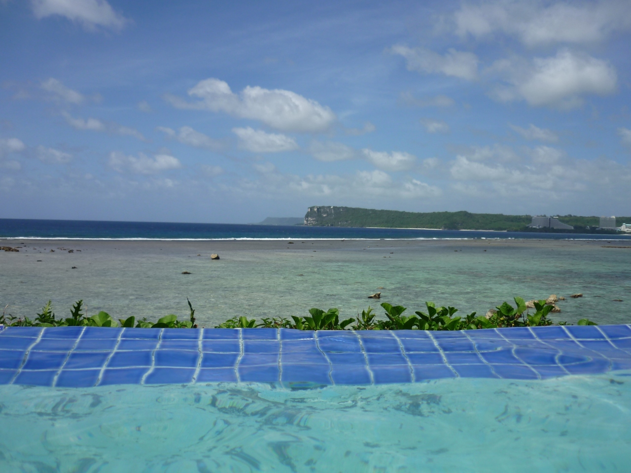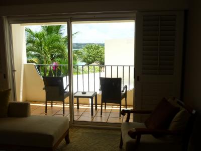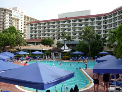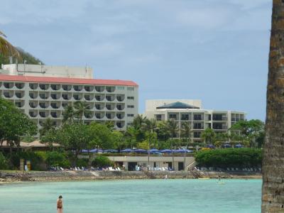 234号室、やや古さが目立つもののバルコニーからタモン湾、恋人岬が一望できその景観と相殺。室内広さは十分だが椅子、ソファーはあるけどテーブルが無かったのがやや不便。ベットは他のヒルトンと同じく高く落ちたら痛いだろうなと思わせる。バスルームには大きな浴槽、ゆったり横になれるが手すりがないので起き上がるのに一苦労。バルコニーにはテーブルセットがあり潮風を受けながらの食事は最高。ただこの部屋からは右手に大きな壁があり視界を遮るのが実に残念。広い敷地内には4つ(5つ)のプールがあり海も目の前(ただし岩が多いのでビーチシューズ必要)、遠浅の海を少し歩けばイパオビーチという子供には楽しくて仕方がないロケーション。3月でも日差しが強く日焼け予防が足らなかったのか、孫は4日目には顔の皮が一皮剥げた。シュノーケルがあればたくさんの熱帯魚が見れる。(ちゃんとお店で18ドルで売っていた)