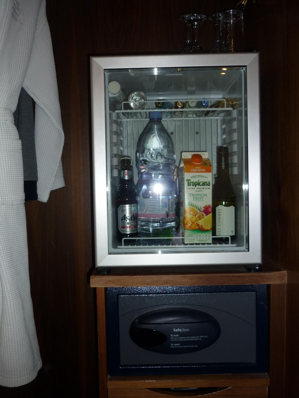 wi−fi無料は今時常識かもしれないが、室内冷蔵庫の中身全部無料はやや驚き、ミネラル水、炭酸飲料、果汁100%ジュースなど計12本。毎日補充してくれた。
