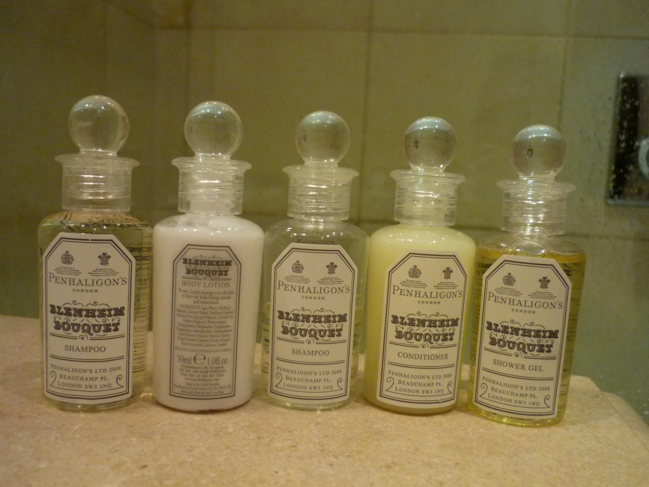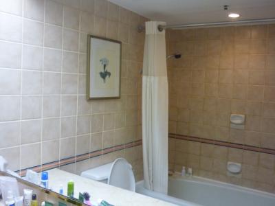 バスルームは大きなバスタブに固定シャワー、アメニティーはペンハリガン、給水温度が上がりにくくなる時があるのが残念だった。それと上階のきしみ音が気になった。