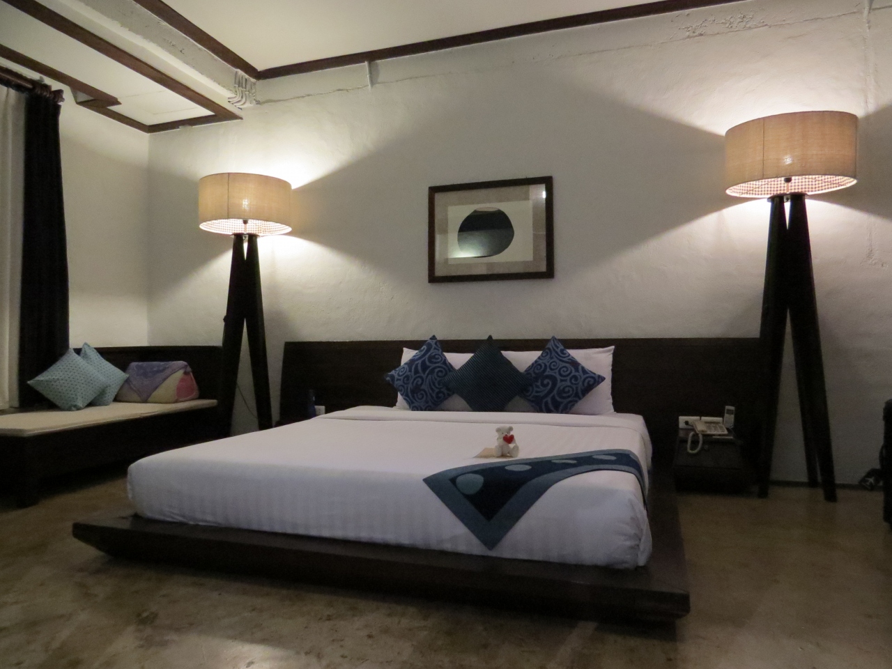 背の低いベットの3方に床から少し上に枠が飛び出ている。その角で初日3,4回足を打ち付けた、しかもその枠には丁寧にも見えにくい色を塗っている。スタッフが部屋まで来ていろいろ説明してくれたのだから、その時「ここに気を付けて」と言ってもらいたかった。
